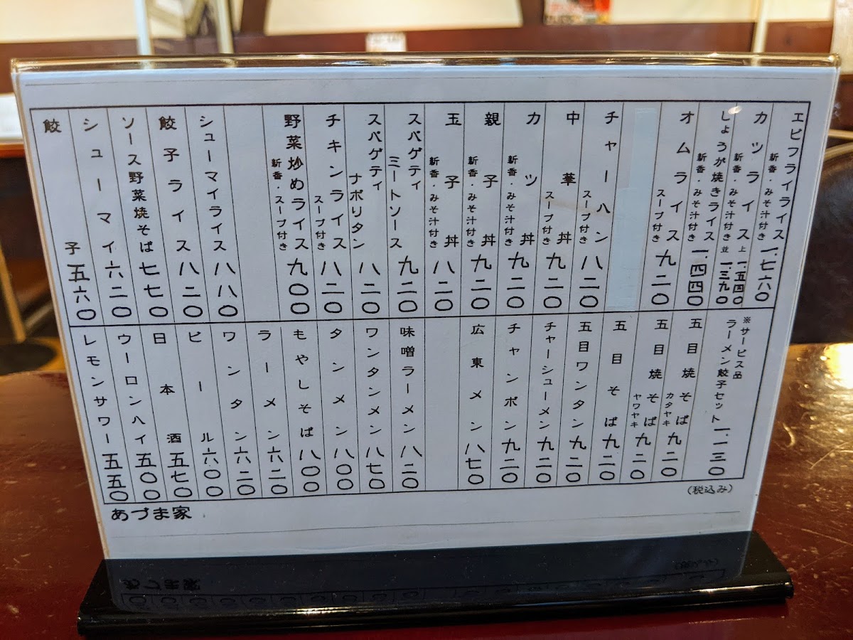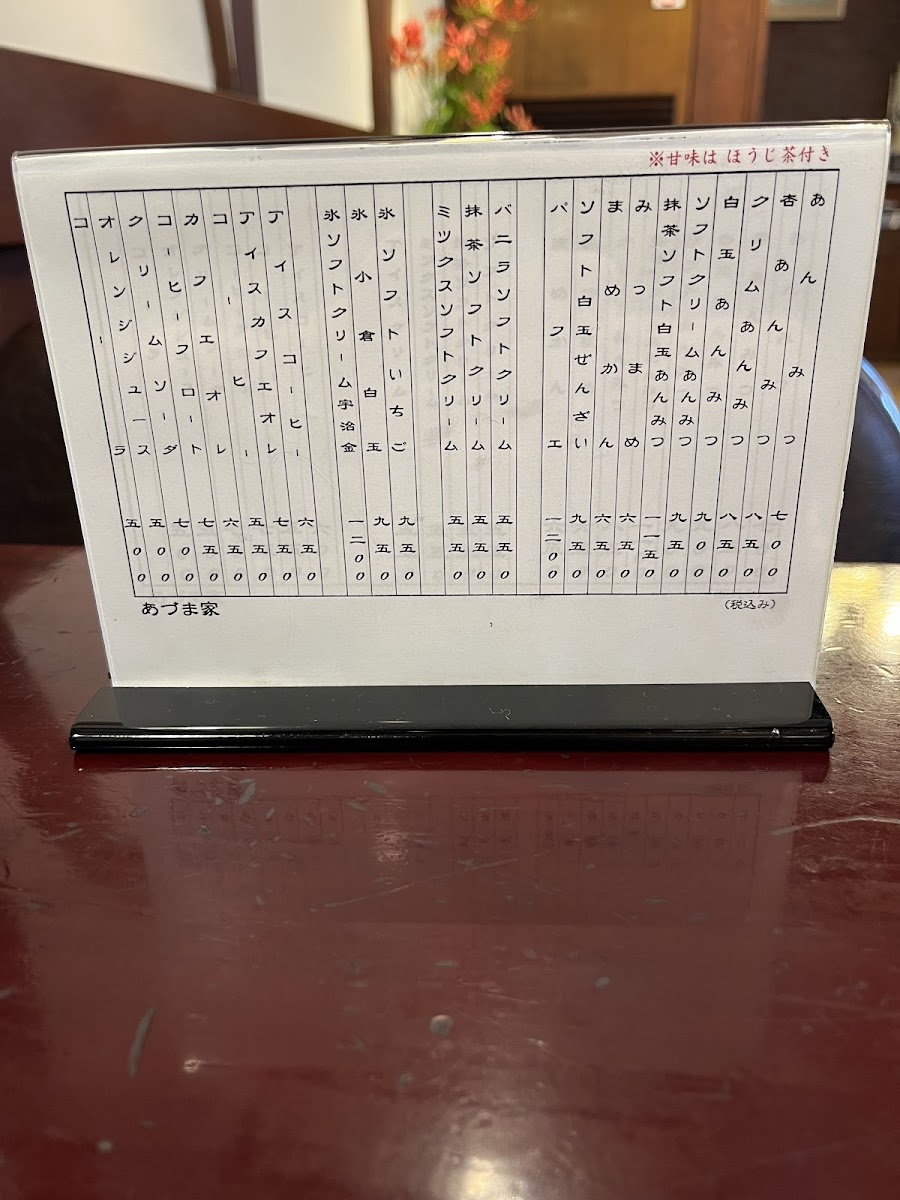 Azuma-ya Menu